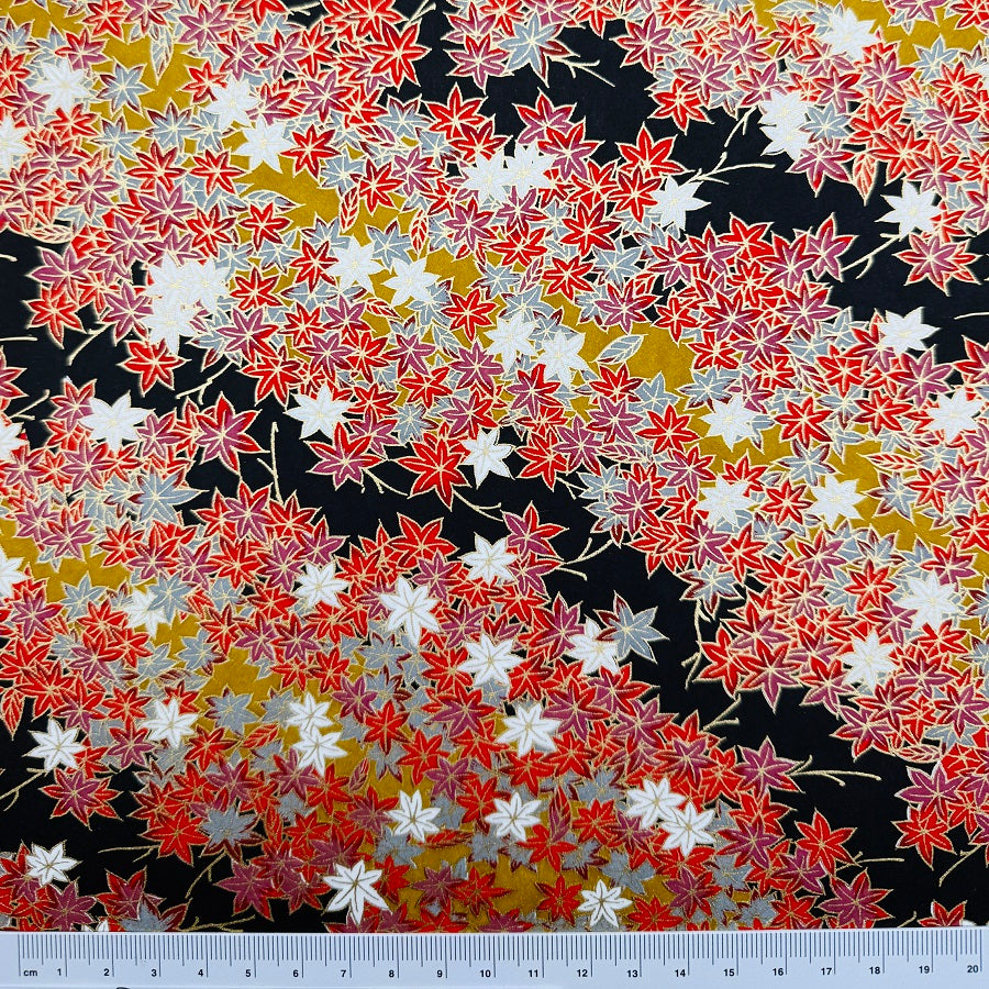 Japanese Yuzen Washi Paper - Maple Leaves - Red/Black - Y1372